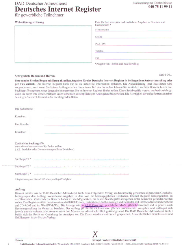 | Achtung vor überteuerten Eintragungen in "Deutsches Internet Register"